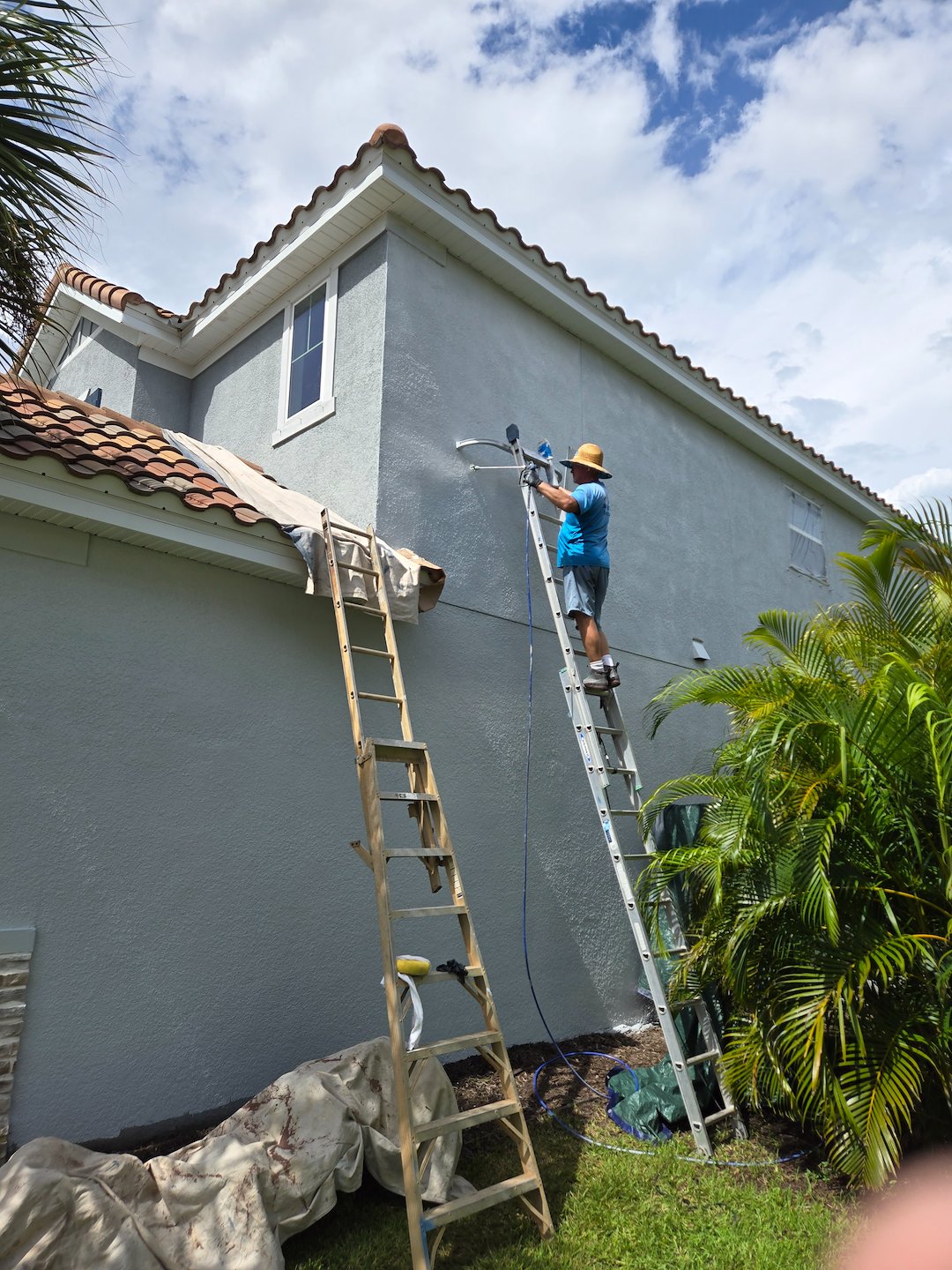 BIC Cleaning And Coatings completed an exterior house painting project in Sarasota, FL, changing the home from a darker shade to a lighter blue. Because Sarasota has a high sun index, the owner chose a lighter color to reduce the rate at which pigment fades in strong sunlight. That decision informed our prep and product choices for the job.