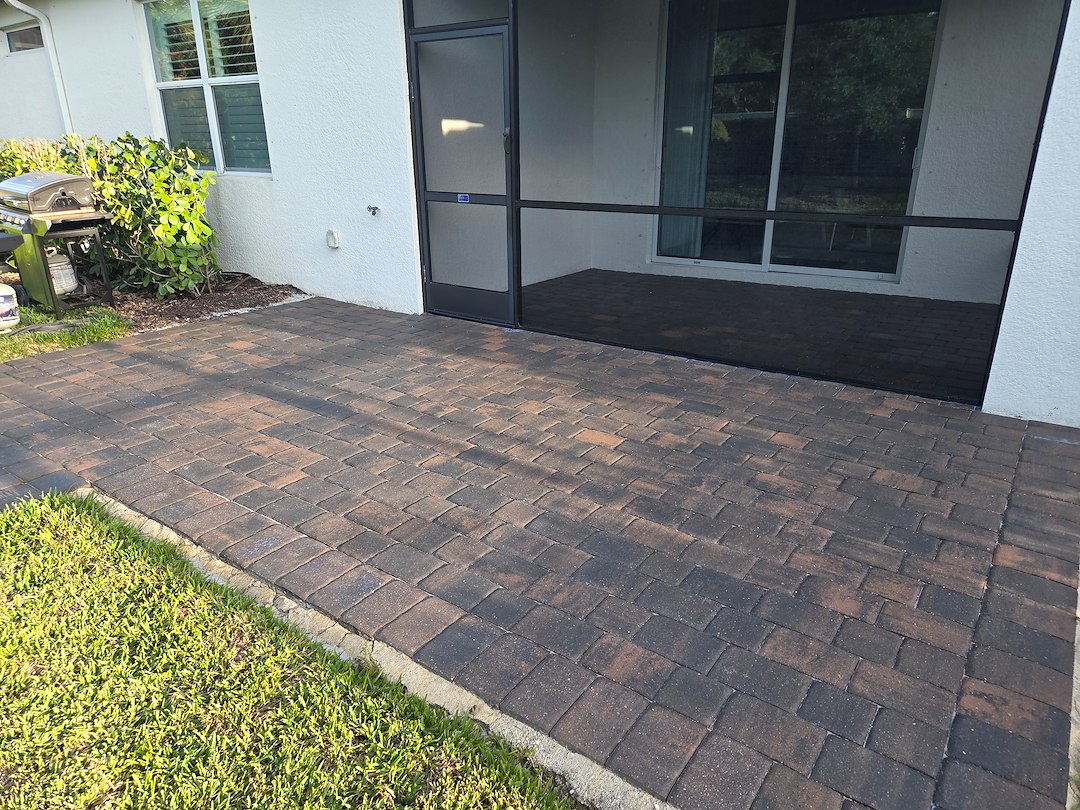 This project was a villa paver restoration performed by BIC Cleaning And Coatings in Englewood, FL. The work focused on the front driveway and the rear lanai, where the goal was to restore the original look of the pavers and protect them for continued use. We completed the job by following a clear sequence of cleaning, joint stabilization, and sealing.